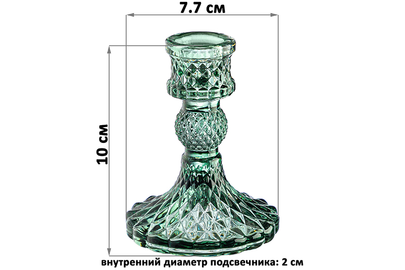 Набор 2 подсвечников размером 7,7x7,7x10 см выполнен из зелёного стекла и прекрасно дополнит интерьер вашей комнаты, гостиной или спальни. Внутренний диаметр каждого – 2 см. Поверхность украшена геометрическим орнаментом в виде ромбиков разного размера, что придаёт ему стильный и изысканный вид. Глубокая чашечка с высокими бортиками не допускает протечки горячего воска и гарантирует плотную посадку свечи. Благодаря этому подсвечник подойдёт для высоких свечей. Он поможет создать приятную атмосферу для романтического вечера. Оригинальный дизайн сделает его прекрасным элементом декора, и он привнесёт уют в квартиру или кабинет. Будет отлично сочетаться с другими аксессуарами для создания декоративных композиций. Станет ярким украшением стола на любой праздник: Новый год, Рождество, день рождения или свадьбу. Не рекомендуется применять абразивные моющие средства. Поставляется в картонной коробке. Такой подсвечник будет необычным и желанным подарком для жены или матери.