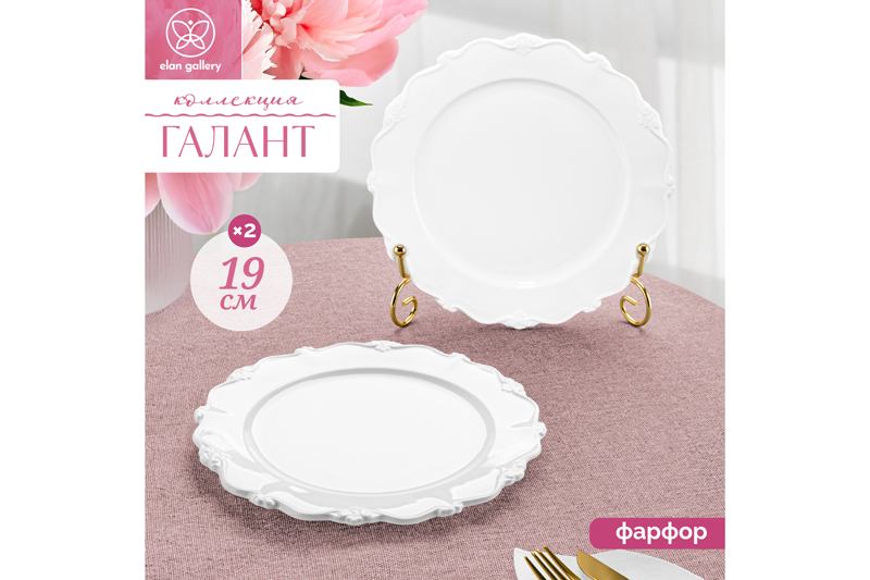Набор 2 тарелок из серии «Галант» предназначен для подачи разнообразных угощений. Размер каждой тарелки – 19х19х1,5 см. Выполнены из высококачественного белого фарфора и украшены ажурной каймой. Фарфор не впитывает цвет продуктов и надолго сохранит свою нежную белизну. Изделия дополнят любой интерьер и привнесут в ваш дом атмосферу французской утончённости. Они подойдут для подачи кулинарных изделий: горячих и холодных блюд, закусок, десертов, овощных и фруктовых салатов. Каждая тарелка станет незаменимым элементом сервировки завтрака, ужина и вторых блюд на обед. Разместите на ней любимую еду, от блинов до пасты. На ней будет хорошо смотреться выпечка или сыр для быстрого перекуса. Не рекомендуется применять абразивные моющие средства. Подойдёт для использования в посудомоечной машине и микроволновой печи. Поставляется в красивой картонной коробке – благодаря ей вам не потребуется дополнительная подарочная упаковка. Это идеальный подарок для хозяйки, ценящей не только практичность, но и стиль. Фарфоровая коллекция «Галант» позволит создать сервировку, как в лучших домах Парижа! /