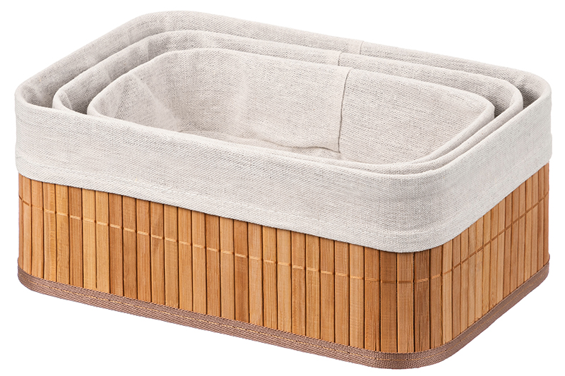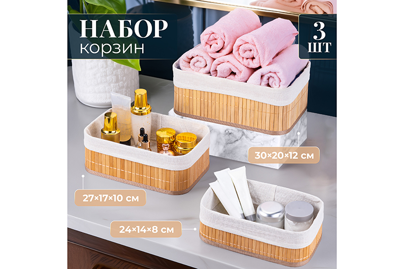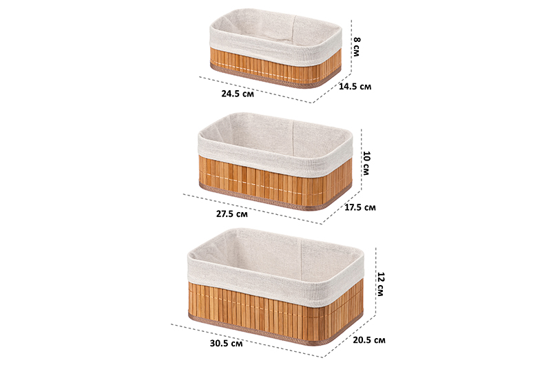 Набор 3 корзин 1 корзина 30,5*20,5*12 см, 1 корзина 27,5*17,5*10 см, 1 корзина 24,5*14,5*8 см.бамбук