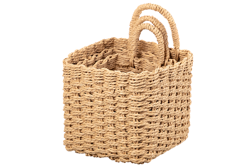 Набор 3 плетеных корзин, 1 корзинка 13*13*20см, 1 корзинка 16*16*23см, 1 корзинка 19*19*26см, солом