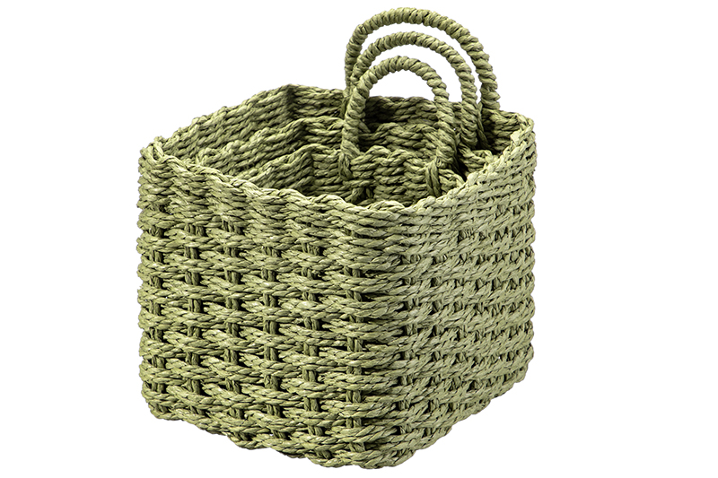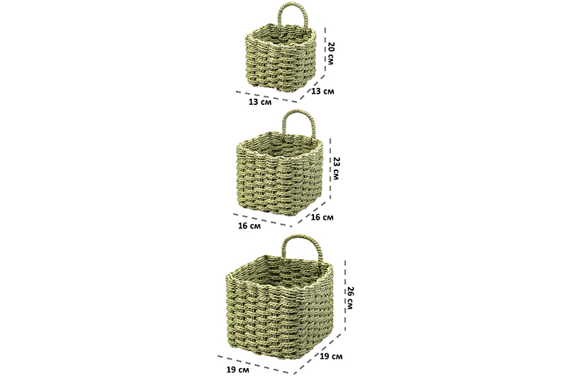 Набор 3 плетеных корзин 1 корзинка 13*13*20см, 1 корзинка 16*16*23см, 1 корзинка 19*19*26см, зелен