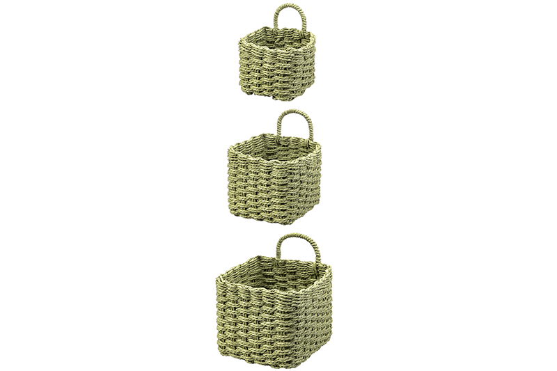 Набор 3 плетеных корзин 13*13*20см, 16*16*23см, 19*19*26см, зелен