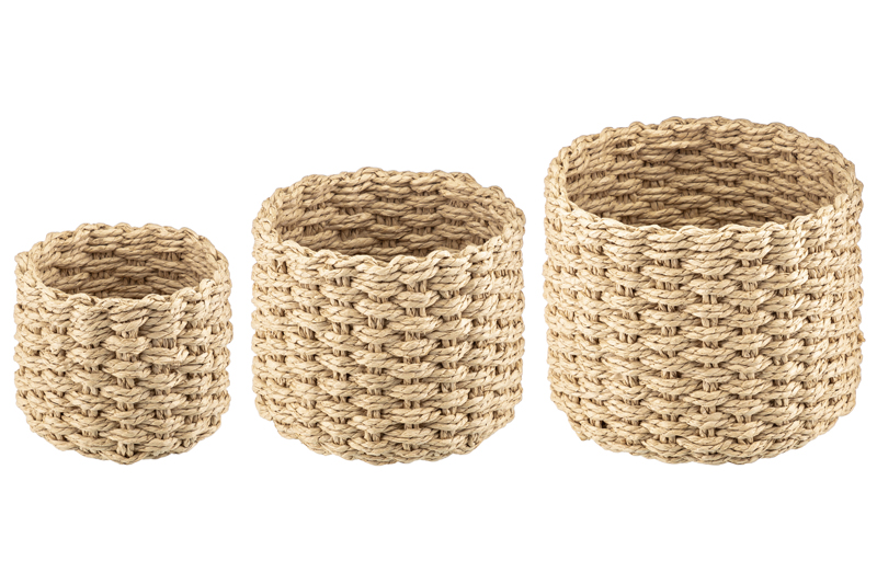 Набор 3 плетеных корзин 1 корзинка 18*18*15см, 1 корзинка 15*15*13см, 1 корзинка 12*12*10см, соломен