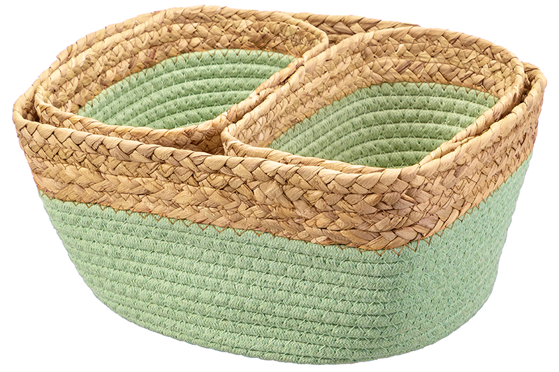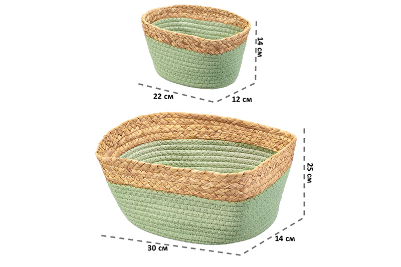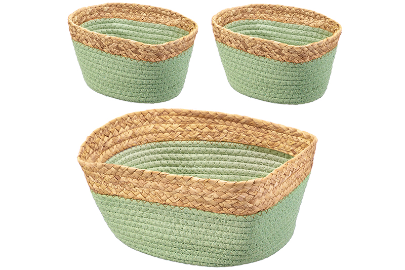Набор 3 плетеных корзин 1 корзинка 30*25*14 см, 2 корзинки 22*14*12 см, зеленый