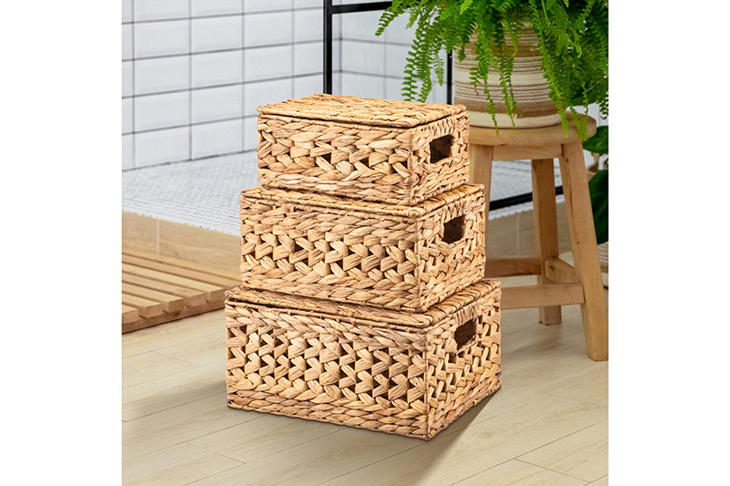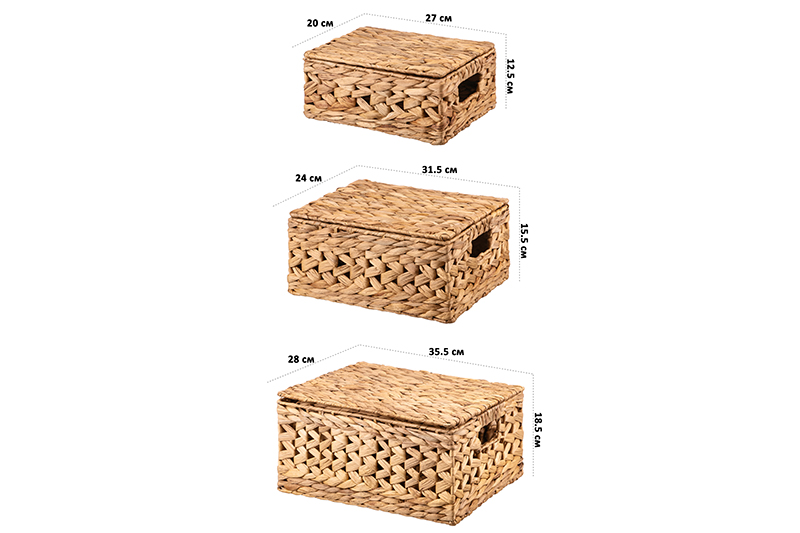 Набор 3 плетеных корзин 35,5*28*18,5 см, 31,5*24*15,5см, 27*20*12,5 см, с крышками, водный гиацинт