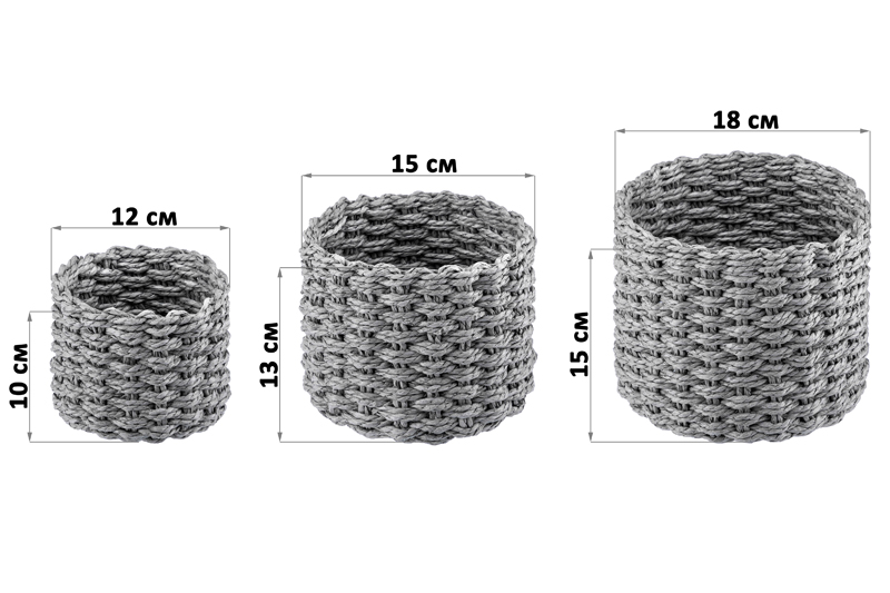 Набор 3 плетеных корзин 1 корзинка 18*18*15см, 1 корзинка 15*15*13см, 1 корзинка 12*12*10см, серый