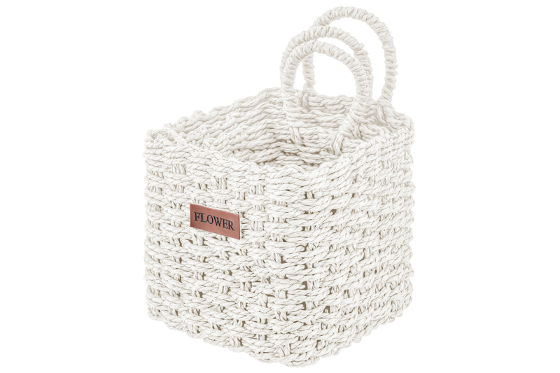 Набор 3 плетеных корзинок 19*19*23 см "Flower" с ручкой, белый