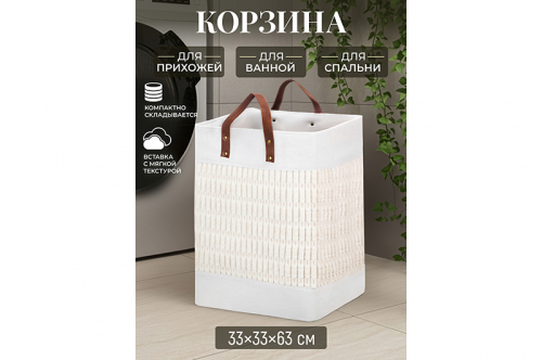 Набор 3 текстильных корзин д/хранения 27*27*20 см, 30*30*25 см, 37*37*30 см, молочный