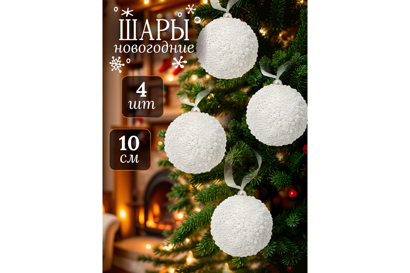 Набор из 4 новогодних шаров украсит вашу елочку и создаст праздничную атмосферу для взрослых и детей! Выполнены из полиуретана. Изделия из этого материала славятся своей лёгкостью. Диаметр каждого шара – 10 см. Нарядные белые шарики украшены декором, напоминающим жемчужины. Игрушки подойдут для использования в роли елочного украшения или интерьерного декора. Мы создали коллекцию новогодних и рождественских товаров для сервировки и декора, которые наполнят пространство атмосферой уюта. Изделия помогут оформить интерьер праздничными композициями и добавят нотку зимнего волшебства. Лёгкие шары можно использовать для создания декоративных композиций и повесить на дверь, окно и живые ёлки во дворе. Каждый шарик имеет удобную петлю для подвешивания на веточку ёлки или стену. Комплект из четырёх ёлочных игрушек станет прекрасным украшением любого интерьера и поднимет настроение каждому. В коллекции бренда Elan Gallery представлены посуда, сувениры и украшения с новогодней символикой. Каждый подберёт оригинальный сюрприз для семьи, друзей и коллег на Новый год и Рождество. Такой подарок наполнит дом семейным теплом и духом праздника! /