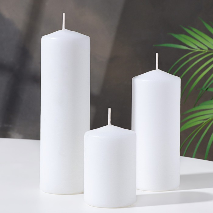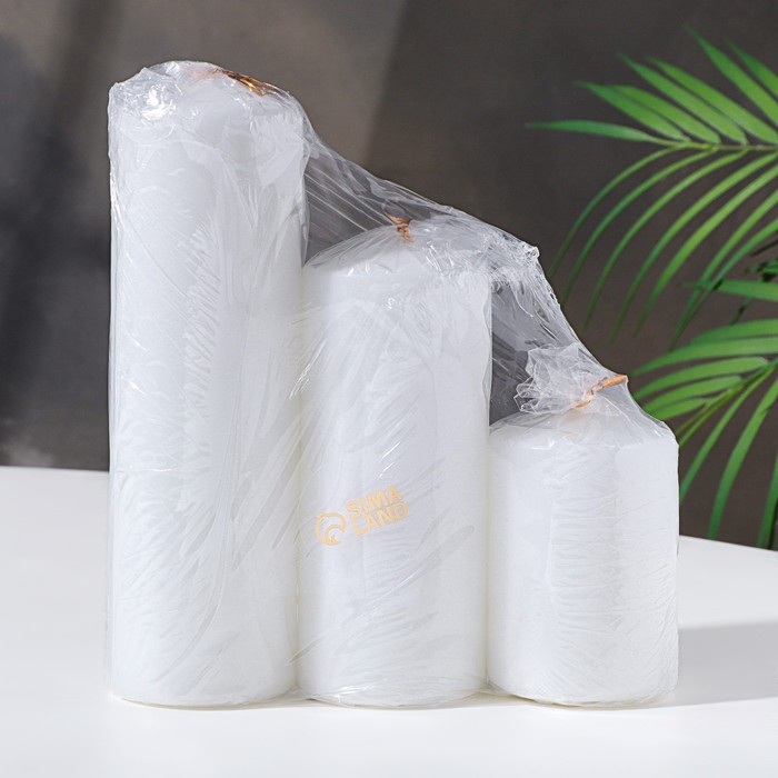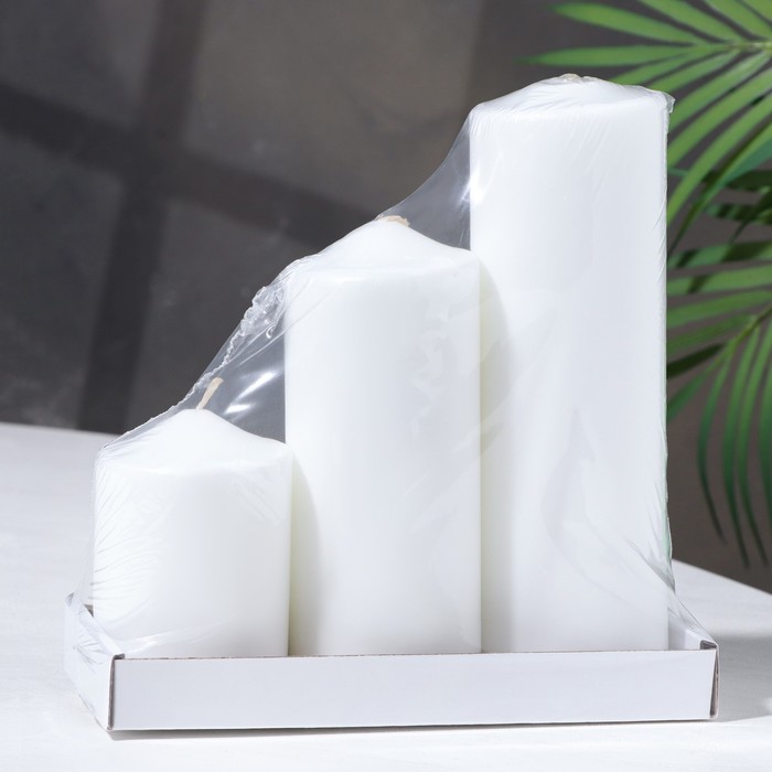 Набор свечей - цилиндров 3 шт. (6×14 см, 6×19 см, 6×8.5 см), белый