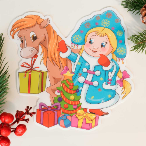Наклейка на стекло "Снегурочка с лошадкой" 20*20см