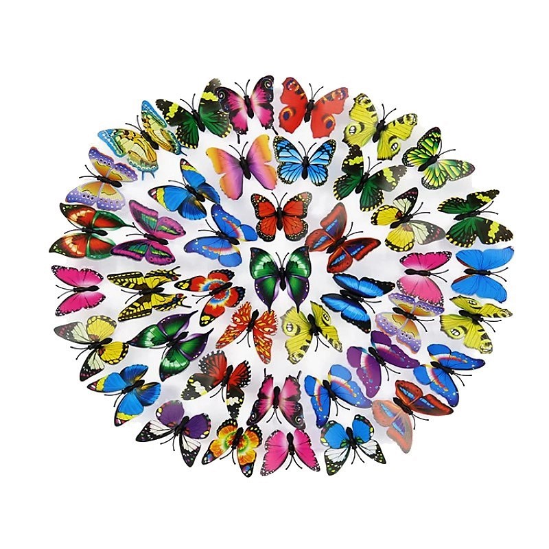 В упаковке 10 штук бабочек разных цветов (красные, розовые,