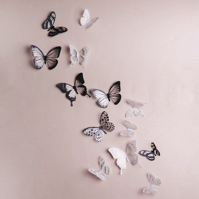 Наклейки 3Д бабочки (черно-белые) - декор для украшения стен