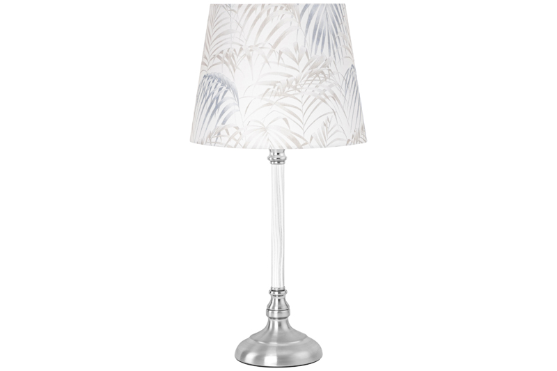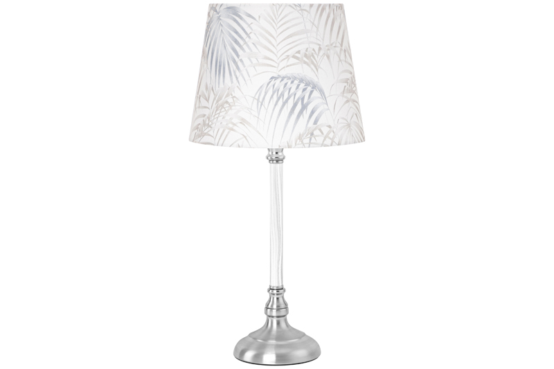 Настольная лампа с абажуром белого цвета от Elan Gallery — это не только дополнительный источник света, но и стильное украшение интерьера спальни или гостиной. Размер – 22х22х46 см. Фигурное основание серебряного цвета выполнено из металла. Диаметр нижней части подставки 11 см. Размеры абажура: диаметр по верху 16,5 см, диаметр по низу 22 см, высота 17 см. Рекомендуется использовать лампочку мощностью не более 40 W (в комплект не входит). Работает от сети, необходимо наличие розетки. Длина провода 136 см. Имеет стильный дизайн: абажур украшен рисунком с тропическими листьями. Декоративный светильник поможет создать уютную атмосферу в комнате или на кухне. Он подходит для использования в качестве ночника, а также прикроватного светильника. Станет отличным предметом декора для вашего комода или журнального столика. Прекрасно впишется в интерьер детской комнаты, создавая уютную атмосферу для школьника. Можно поставить на туалетный столик возле кровати для спокойного чтения книг перед сном. На даче ночной светильник поможет создать приятную атмосферу на террасе или в доме. Поставьте красивую лампу на стол или тумбочку, чтобы организовать дополнительную подсветку в любом пространстве. Фигурная настольная лампа станет приятным подарком на любой праздник как взрослым, так и детям. Не рекомендуется использовать абразивные моющие средства. Светильник с металлическим основанием серебристого цвета — это не просто источник освещения, он украсит интерьер вашего дома и поможет создать уютную атмосферу! В ассортименте Elan Gallery представлено много товаров и предметов декора, которые позволят создать уголок гармонии для комфортного отдыха дома.