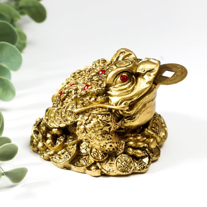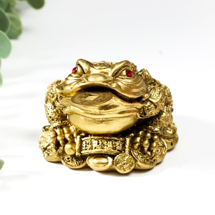 Нэцкэ фигурка под бронзу «Жаба на монетах и слитках с жемчужинами», 6×8.5×8 см