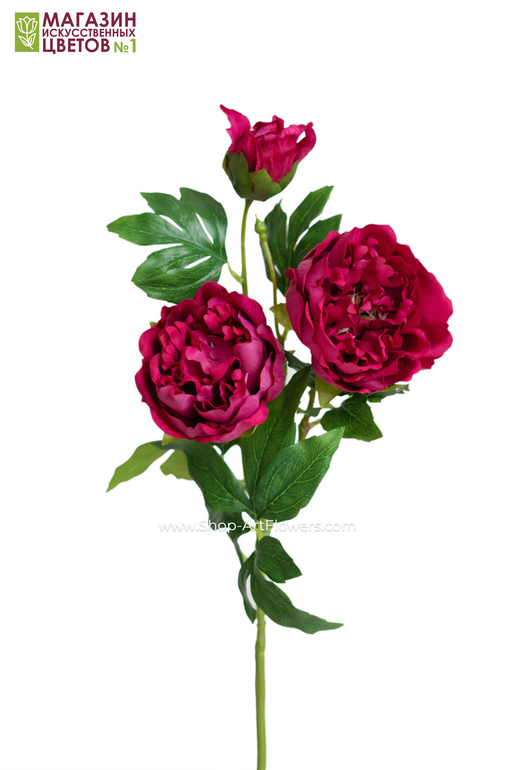НОВИНКА! 81 СМ Пион 3 бутона (2 открытых + 1 закрытый)(силикон) (малиновый)
