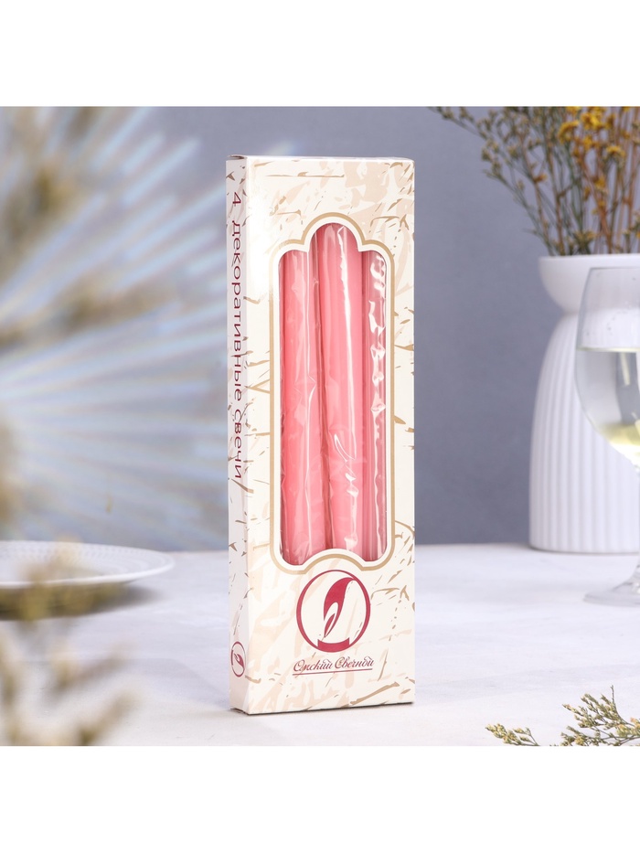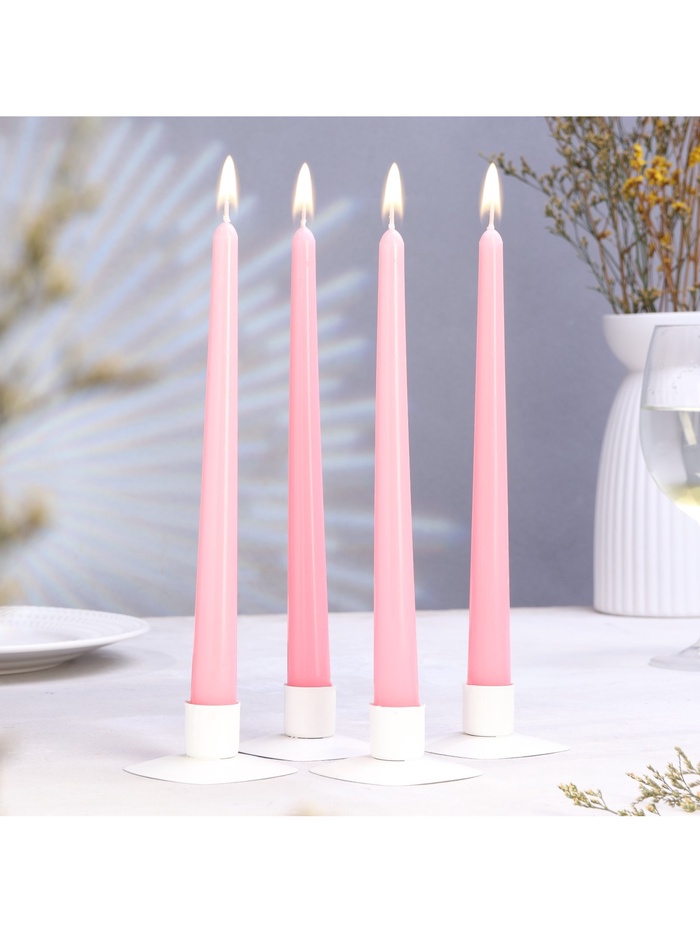 Набор свечей античных, 2.3×24.5 см, 5 ч, 55 г, 4 шт., светло-розовая