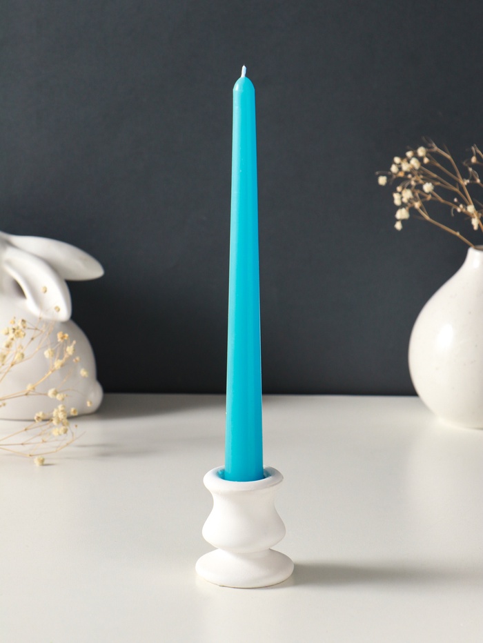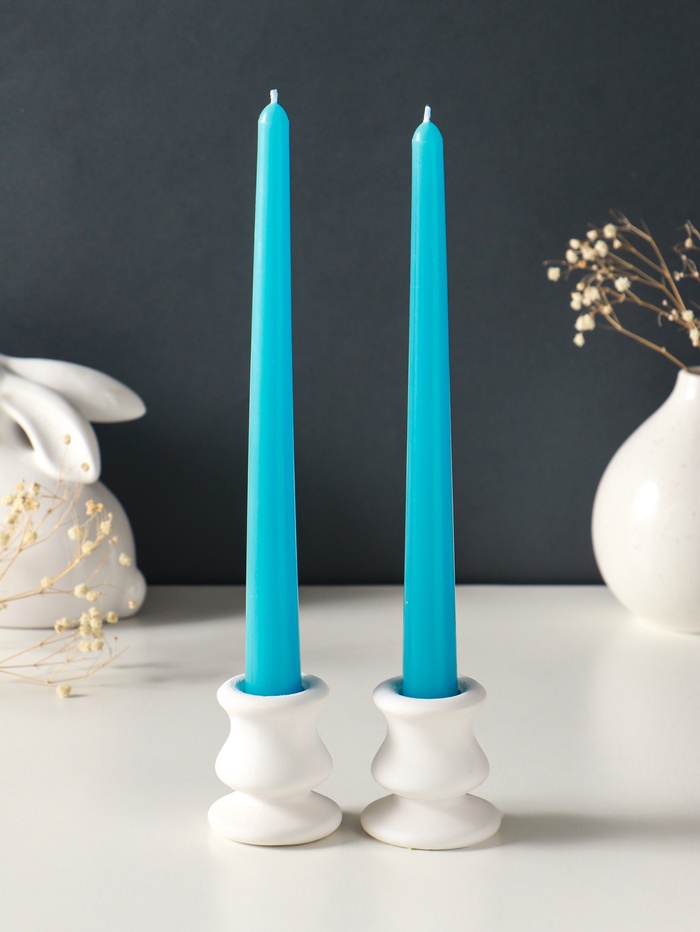 Длинные синие свечи — это готовое декоративное решение. Их пламя придаёт глубину вечернему освещению, а строгие линии форм добавляют интерьеру элегантности. Используйте их парно для симметрии на камине или обеденном столе. Такой набор станет продуманным акцентом или лаконичным подарком, говорящим о внимании к деталям.