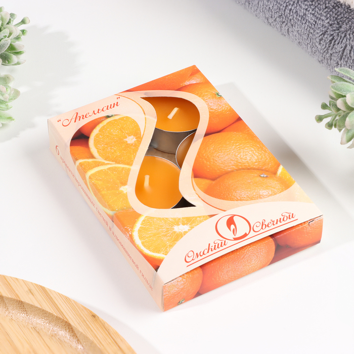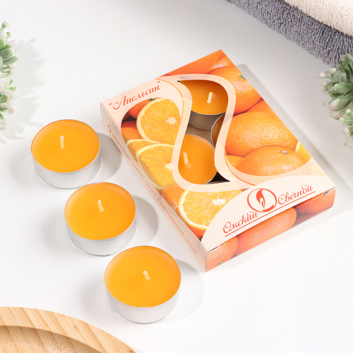 Набор свечей ароматических чайных «Апельсин», 3.8×1.6 см, 3.5 ч, 12 г, 6 шт.