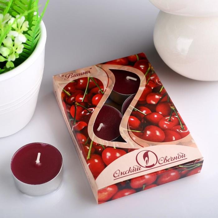 Набор свечей ароматических чайных «Вишня», 3.8×1.6 см, 3.5 ч, 12 г, 6 шт.