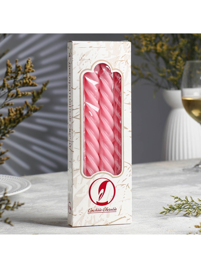 Набор свечей витых, 2.3×24.5 см, 5 ч, 50 г, 4 шт., светло-розовый