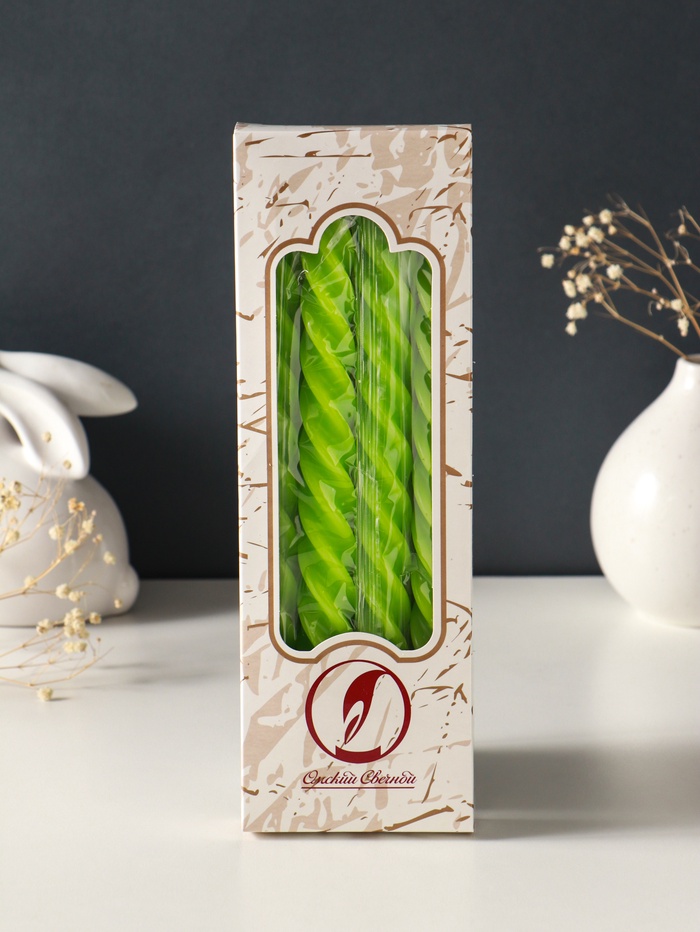 Этот набор из четырёх высоких зелёных свечей создан для тех, кто ценит долгие вечера и уютную атмосферу без навязчивых запахов. Их спокойное, продолжительное горение и элегантная витая форма превращают обычный ужин или чтение книги в маленький ритуал. Простой парафин в умелых руках мастеров становится изящным и долговечным декором.