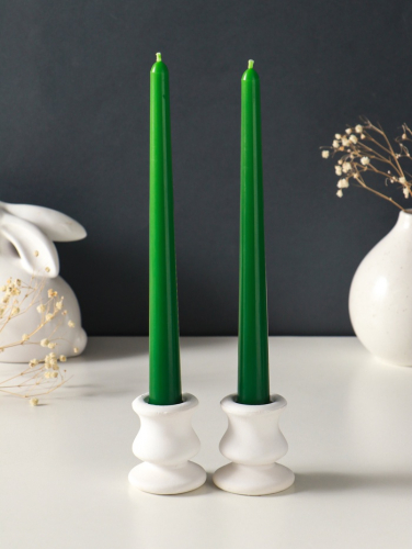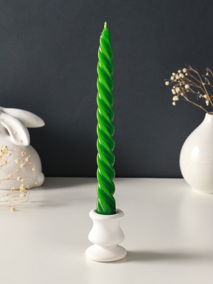 Эти высокие витые свечи создают атмосферу уюта и торжества. Их пламя, живое и тёплое, придаёт интерьеру динамику и завораживающий световой рисунок. Пара свечей в наборе — готовое решение для украшения праздничного стола, каминной полки или создания романтического настроения. Глубокий тёмно-зелёный цвет делает их универсальным аксессуаром как для новогодних праздников, так и для повседневного декора.