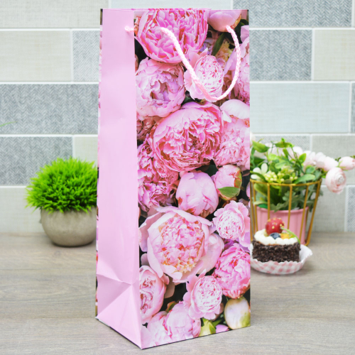 Пакет бумажный 14*35*11см с ручками "Цветы" микс 00019M