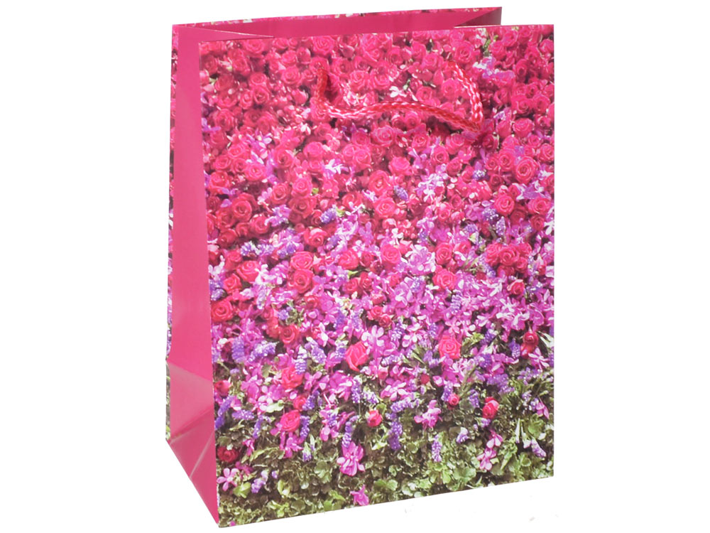 Пакет бумажный 18*23*10см с ручками "Цветы" микс 00019E