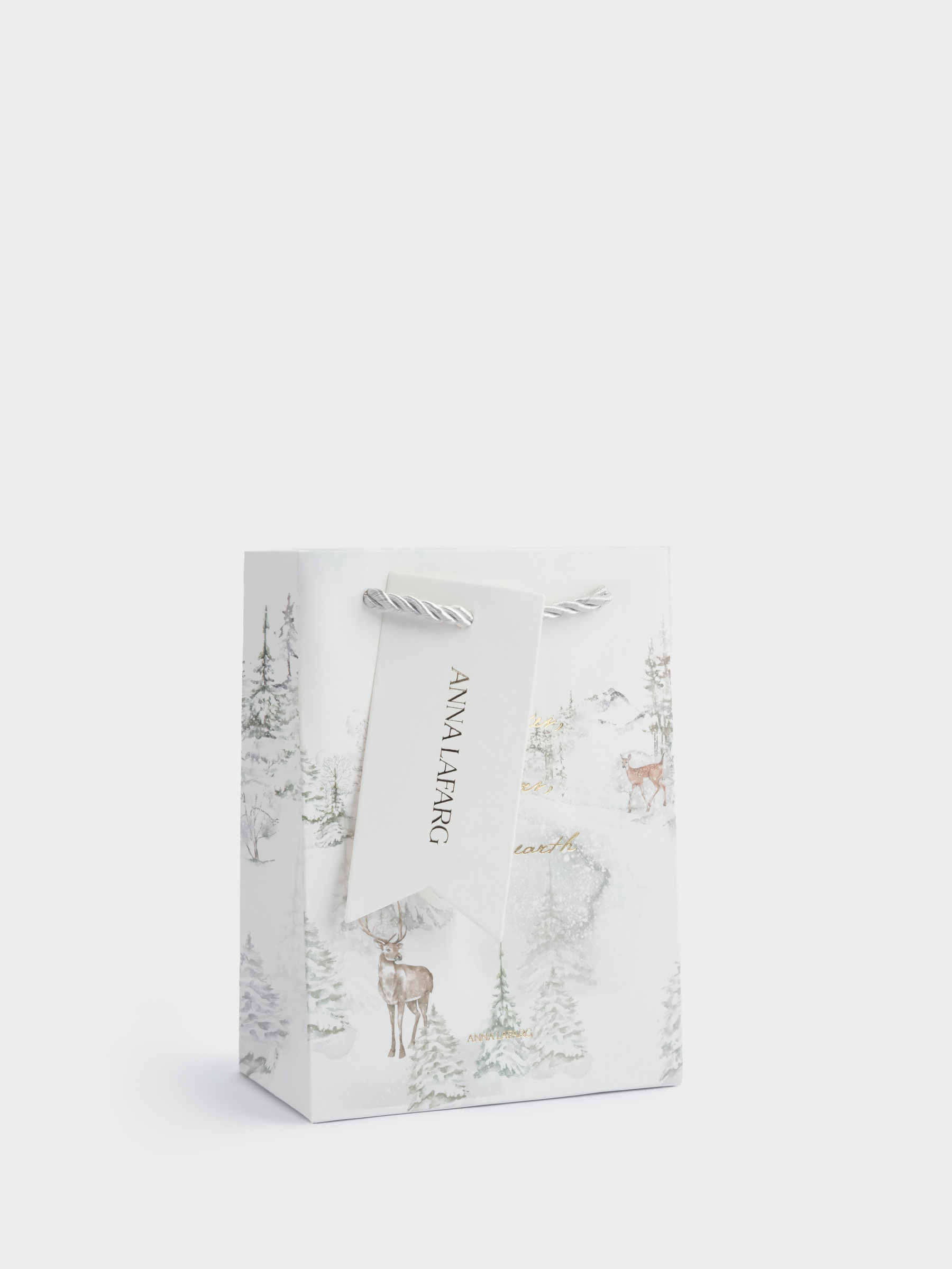 Пакет подарочный, 12х16 см, бумага, белый, Лес в снегу, Maral grey