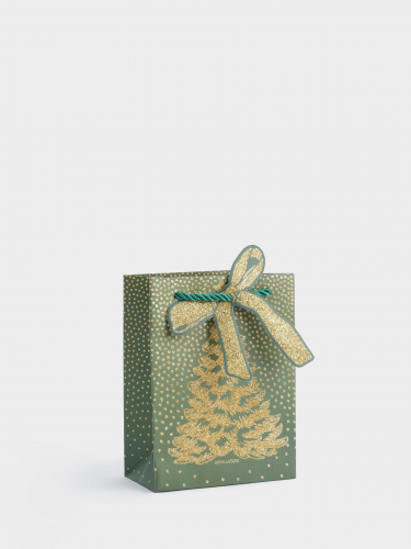Пакет подарочный, 12х16 см, бумага, золотисто-зеленый, Елка, New year