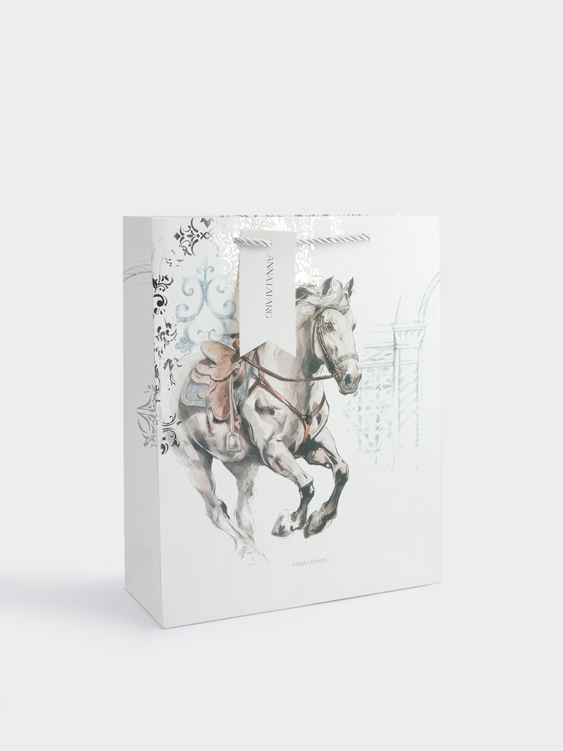 Пакет подарочный, 26х32 см, бумага, белый, Конь, White horse
