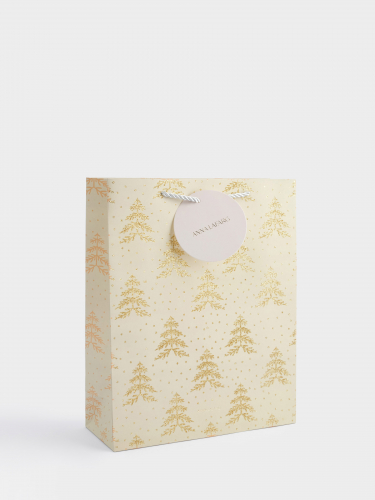 Пакет подарочный, 26х32 см, бумага, серый, Золотистые елки, Fir