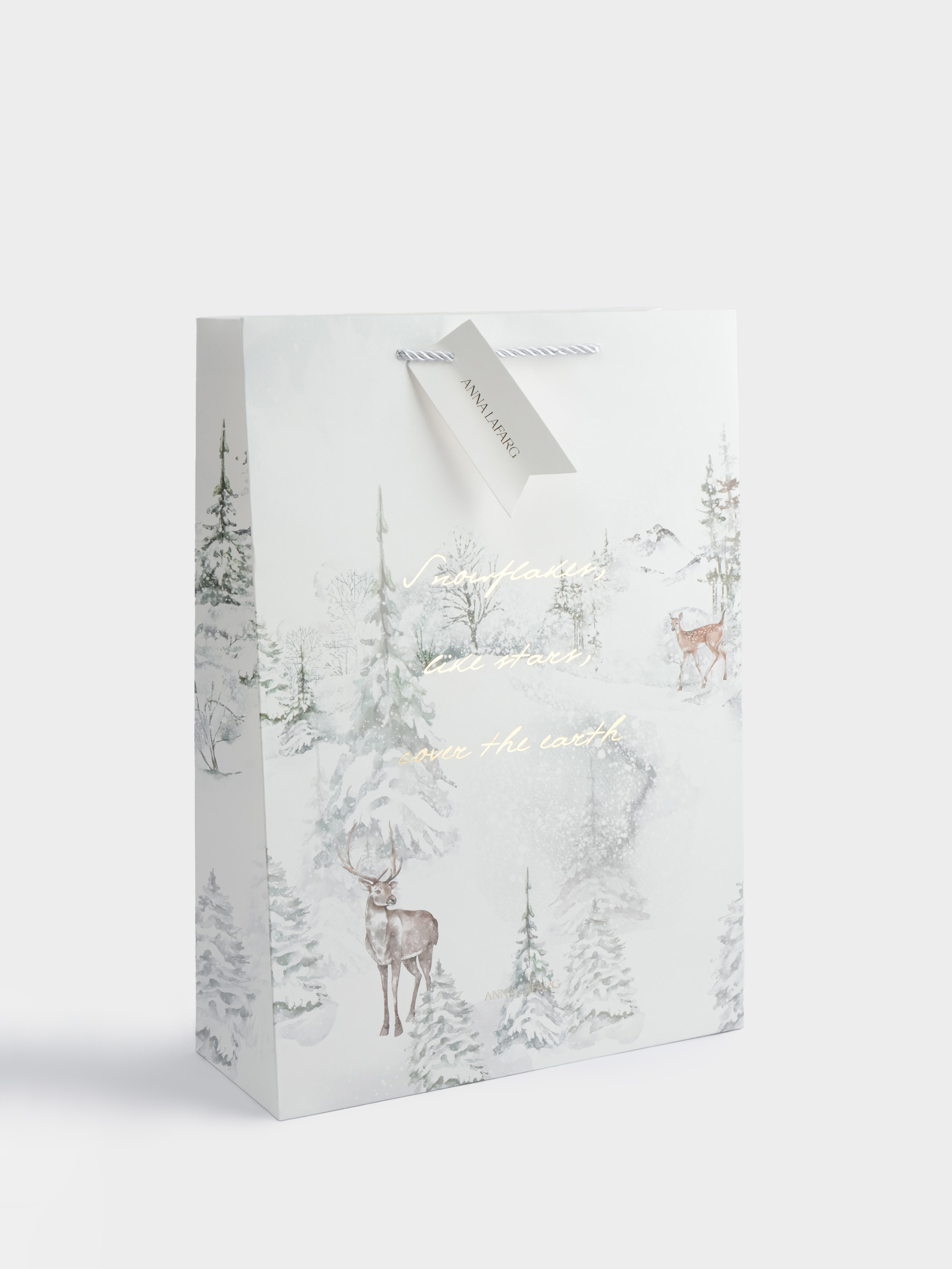 Пакет подарочный, 30х42 см, бумага, белый, Лес в снегу, Maral grey