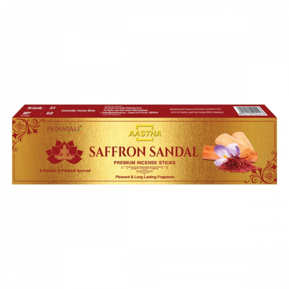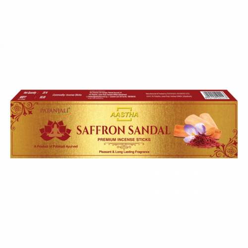 PATANJALI Aastha Premium Agarbatti Saffron Sandal Благовоние Шафран-Сандал (масальные) 20шт