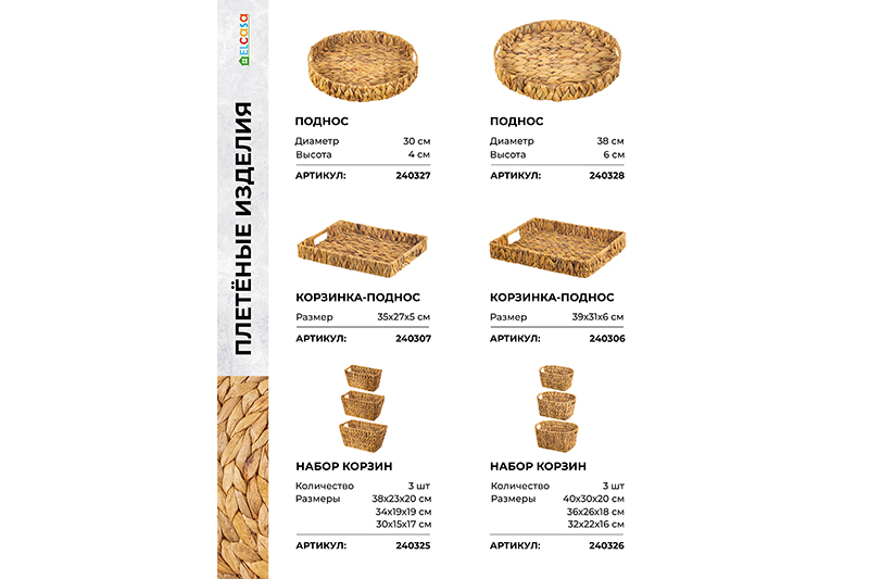 Плетеный поднос бренда El Casa изготовлен из высушенных стеблей и листьев водного гиацинта. Полный размер подноса - 30х30х4 см. Натуральный цвет подноса подчеркивает его органичность и гармонию с окружающей средой. Он добавит натуральность и теплоту вашему интерьеру. Данное изделие можно использовать для эстетичной подачи закусок, горячих блюд, напитков. Это отличный вариант для сервировки чая, вина, завтрака в постель, организации чаепитий и чайных церемоний на веранде. Плетеная корзинка идеальна для хранения одежды, канцелярии, косметики, предметов личной гигиены. Подходит для размещения на кухне, в прихожей, гостиной. Органайзер из водного гиацинта имеет прочное дно, высокие бортики и удобные отверстия под ручки, которые облегчают его переноску. Поднос не боится температурных перепадов, влажности, не выгорает на солнце. При уходе не рекомендуется применять абразивные моющие средства. Интерьерный плетеный поднос станет практичным подарком для родных и близких.
