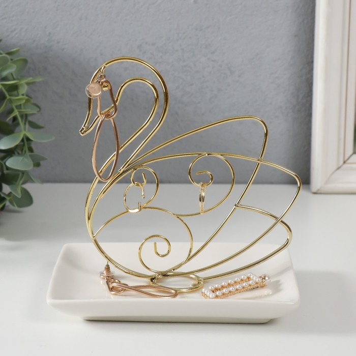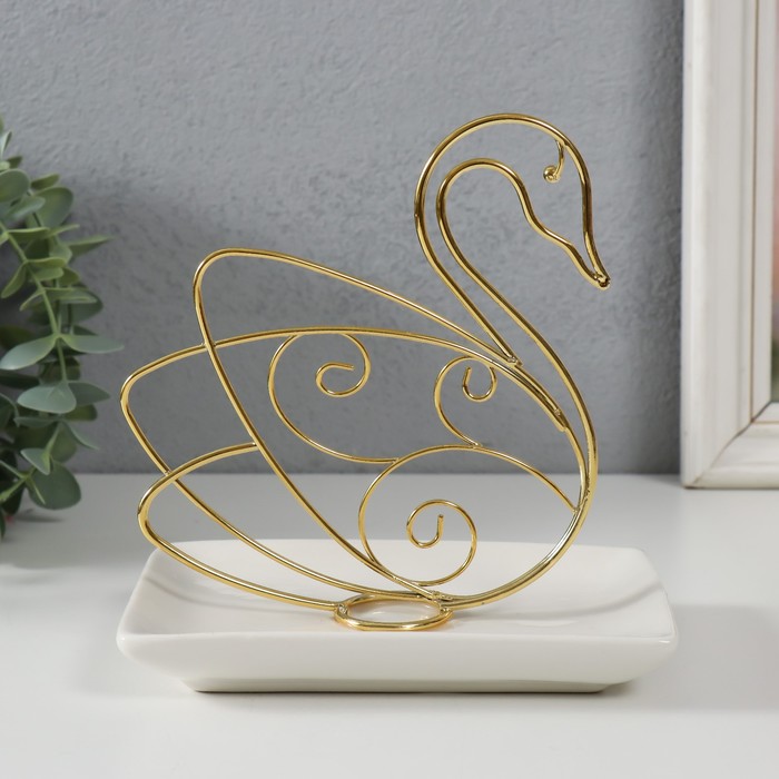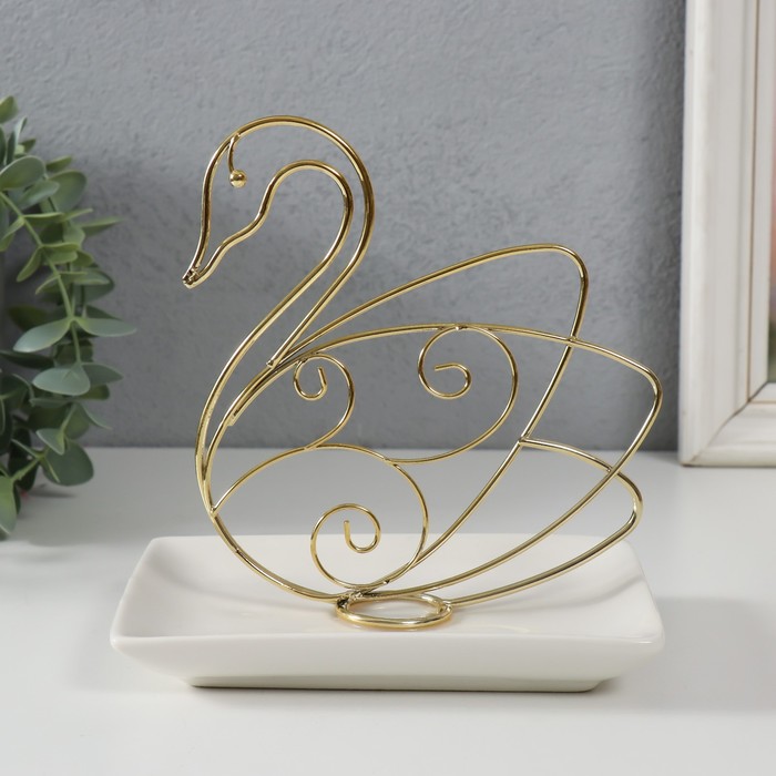 Эта керамическая подставка в форме лебедя — элегантное решение для хранения мелочей. Изящная фигурка птицы с позолотой сочетает функциональность и декоративность, становясь стильным акцентом на туалетном столике, рабочем столе или полке в ванной.
