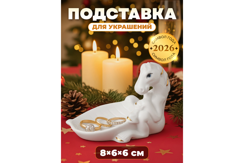 Подставка для украшений 8,5*6*6,5 см "Лошадь" белая с золотом, фарфор