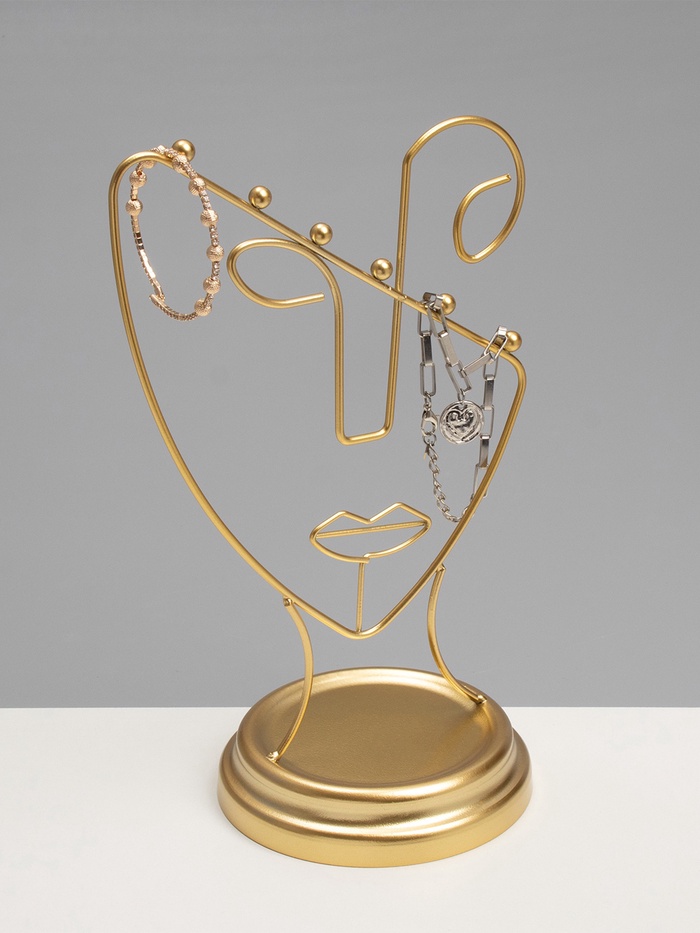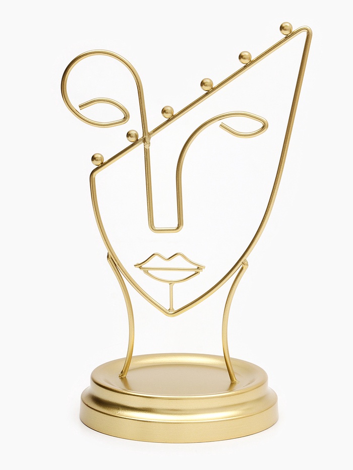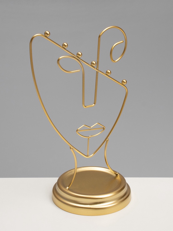 Золотистая подставка в форме пол-лица — это стильное и функциональное решение для хранения украшений, которое гармонично впишется в любой интерьер. Высота 26 см и компактная длина 13 см обеспечивают удобство размещения на столе или полке, а уникальный дизайн в виде силуэта человека добавляет художественную выразительность и индивидуальность.
