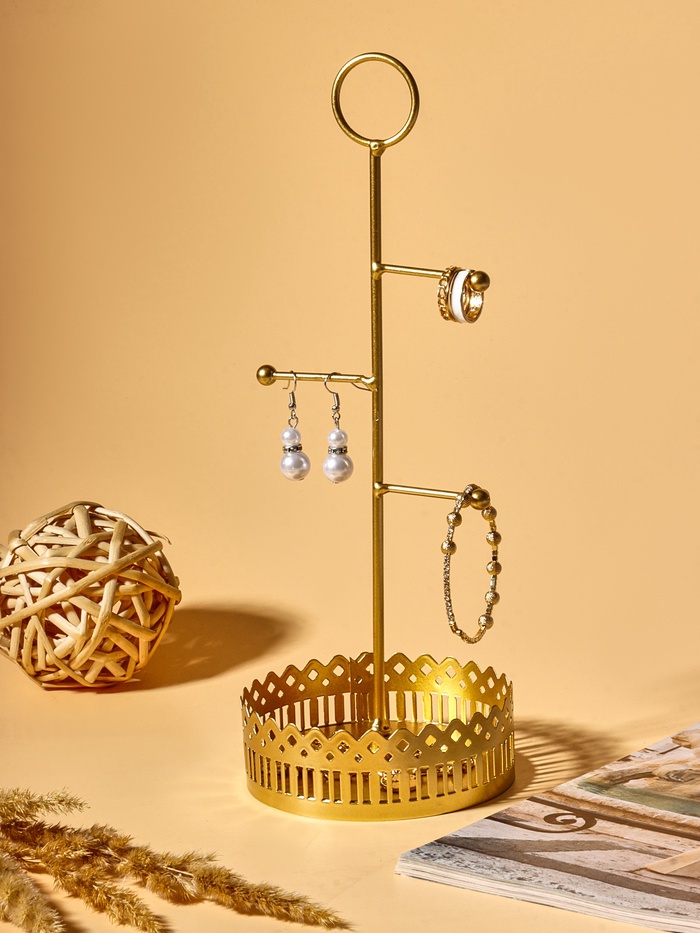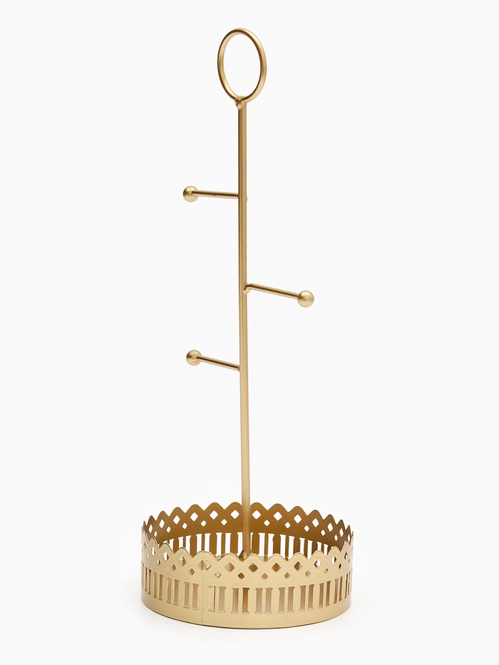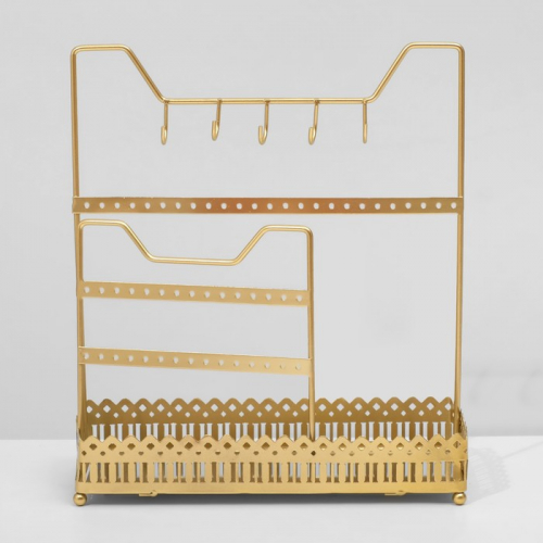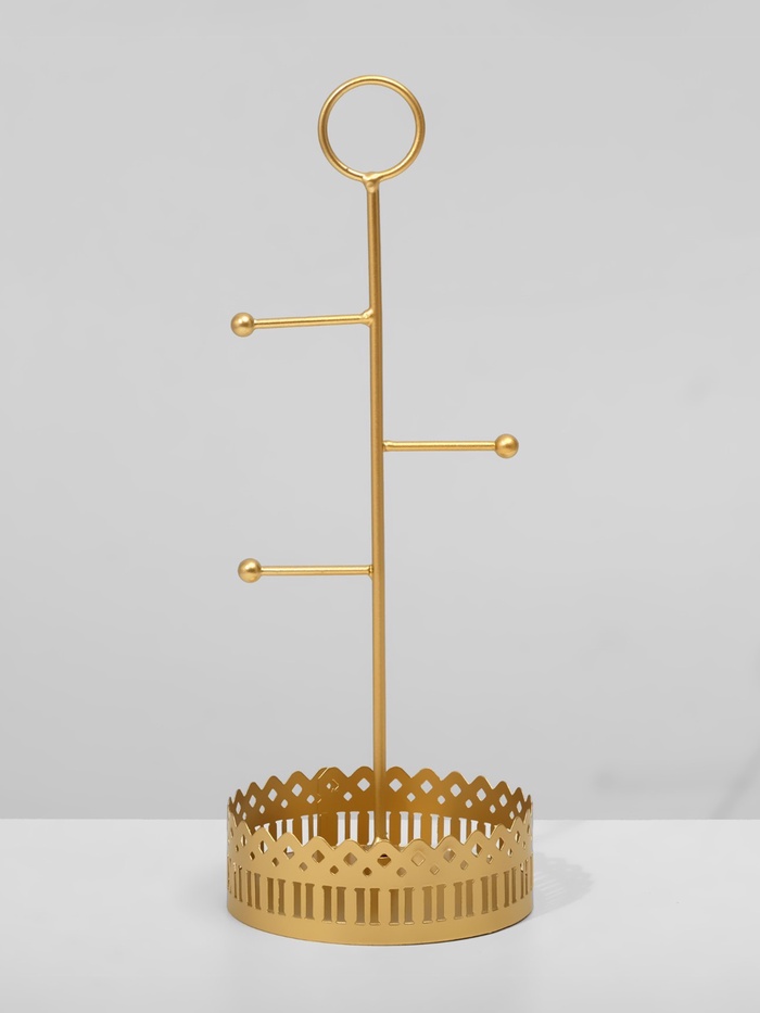 Золотистая подставка «Сканди» сочетает в себе лаконичность скандинавского стиля и продуманную функциональность. Компактные размеры 12,5×28,5 см позволяют разместить её на любом столе или полке, обеспечивая удобное хранение украшений и мелких аксессуаров без лишнего беспорядка.