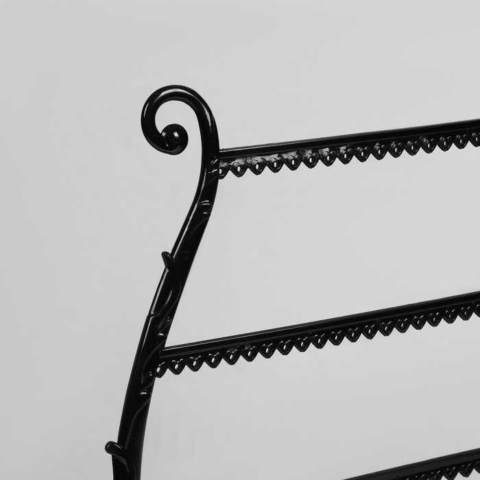Изготовленная из прочного пластика, подставка сочетает в себе лёгкость и надёжность. Глубокий чёрный цвет придаёт изделию элегантность и современный вид, который гармонично впишется в любой интерьер, подчёркивая изысканность и ценность ваших украшений.