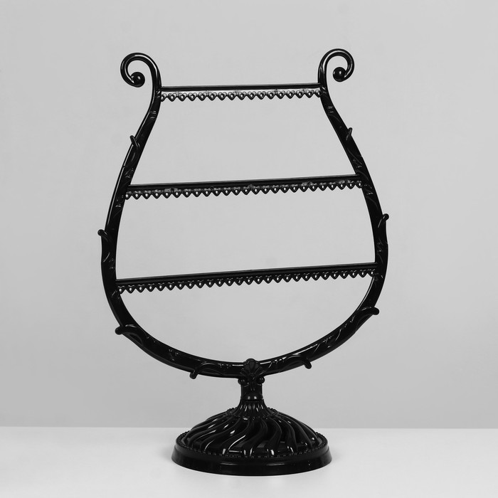 * Современный дизайн: форма арфы и насыщенный чёрный цвет создают стильный акцент, подчёркивающий красоту украшений.