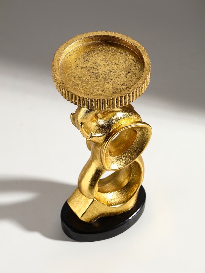 Подсвечник на 1 свечу «Абстракция. Слон», полистоун, золото, 10.9×9.5×23.8 см
