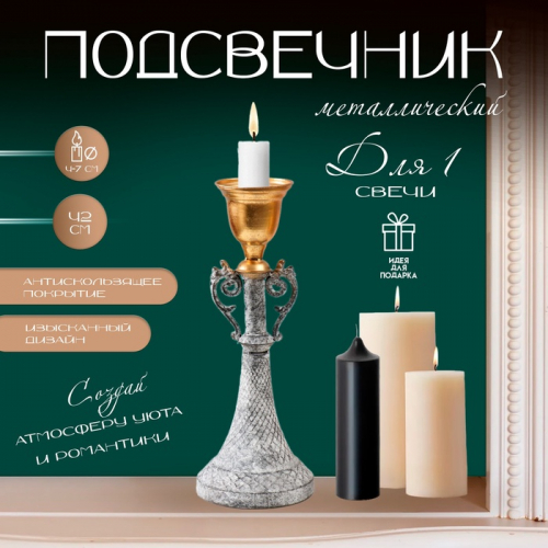 Погрузитесь в атмосферу изысканности и благородства с этим элегантным подсвечником. Его серебристый оттенок и утончённый дизайн вдохновлены эпохой Возрождения, привнося в ваш интерьер нотки аристократического шика. Изготовленный из прочного полистоуна, он сочетает в себе долговечность и эстетическую привлекательность.