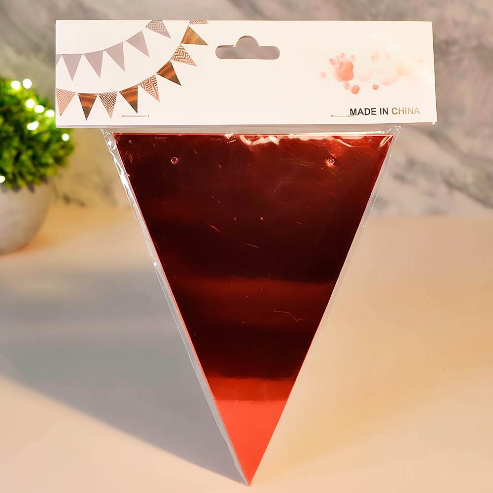 Растяжка "Праздничные флажки" 2,5м 13*17,5см 10шт, глянец красный