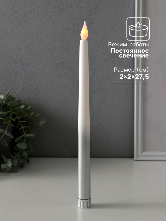 Создайте атмосферу уюта и романтики с этим элегантным решением для мягкого освещения. Две изящные светодиодные свечи в серебристом исполнении добавят интерьеру нотку тепла и гармонии, полностью имитируя настоящее пламя без всякого риска.