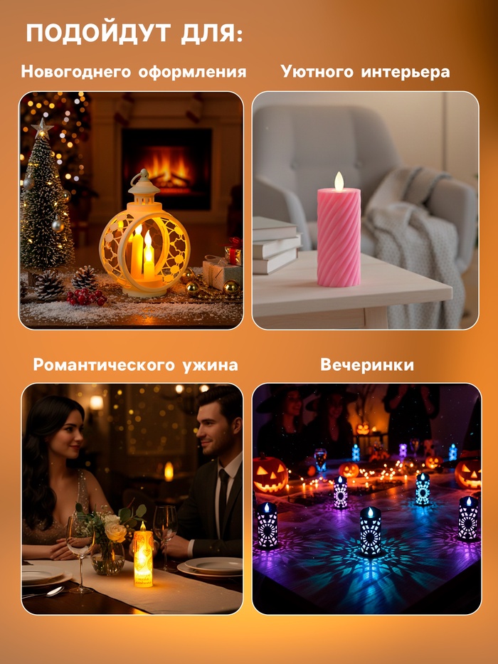 Эти светильники — идеальное решение для тех, кто ценит атмосферу живого огня, но заботится о безопасности. Они одинаково хорошо подойдут для романтического ужина, создания уюта в гостиной или оформления спальни. Простота использования и долгий срок службы делают их практичным выбором для ежедневного использования.