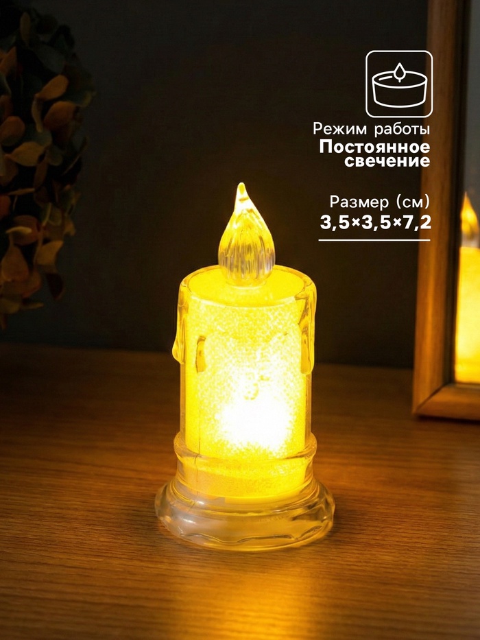 Эта светодиодная свеча с эффектом подтёков воска создаёт уютную и расслабляющую атмосферу без огня и беспокойства. Идеальна как ночник в спальне, романтический акцент для ужина или умиротворяющий элемент декора в гостиной. Её универсальный прозрачный дизайн впишется в любой интерьер и станет элегантным дополнением праздничного стола.