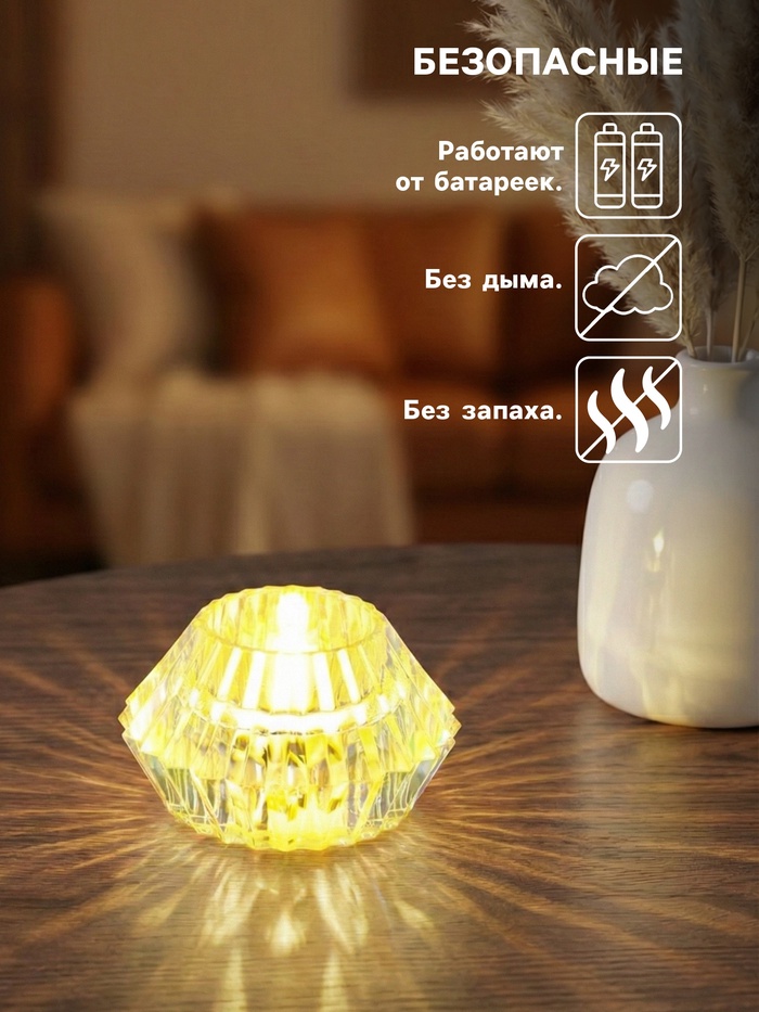 * Реалистичное жёлтое свечение от одного светодиода имитирует естественное пламя.