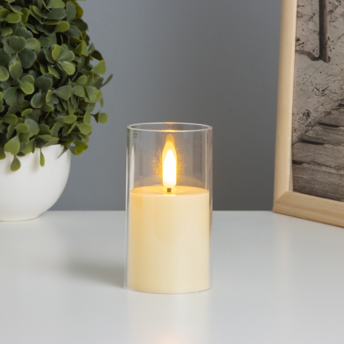 Светодиодная свеча, ночник LED RISALUX «В стакане», 3×LR44, 5.7×5.7×10 см
